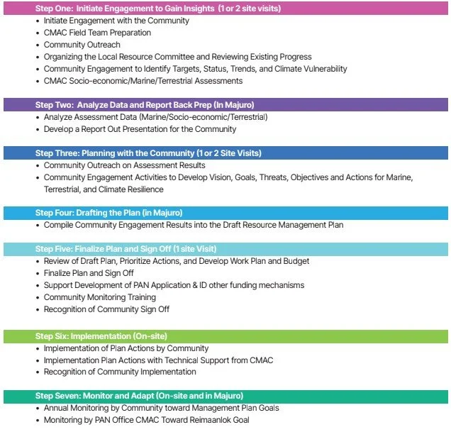 The Reimaanlok Conservation Area Management Planning Framework was updated in 2025 and it continues to help atoll communities in the Marshall Islands in a holistic manner to think globally and act locally. It employs community-based tools and approaches to articulate local objectives that translate to national, regional and international goals.